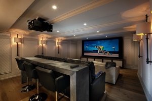 Our client wanted a theatre for the entire family. The children are gamers who wanted an immersive gaming experience. The parents wanted high end performance while ensuring the style of the theatre blended seamlessly with the rest of the house.