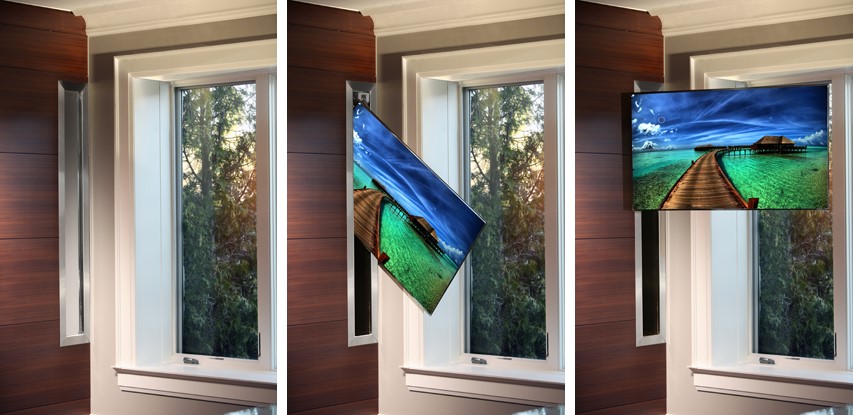 We turned to the industrial world and engaged trades that do this type of a project on a grand scale; companies that build roller coasters and design robot painting systems for automotive production. Working with them we designed and built a true one off hidden TV mechanism.